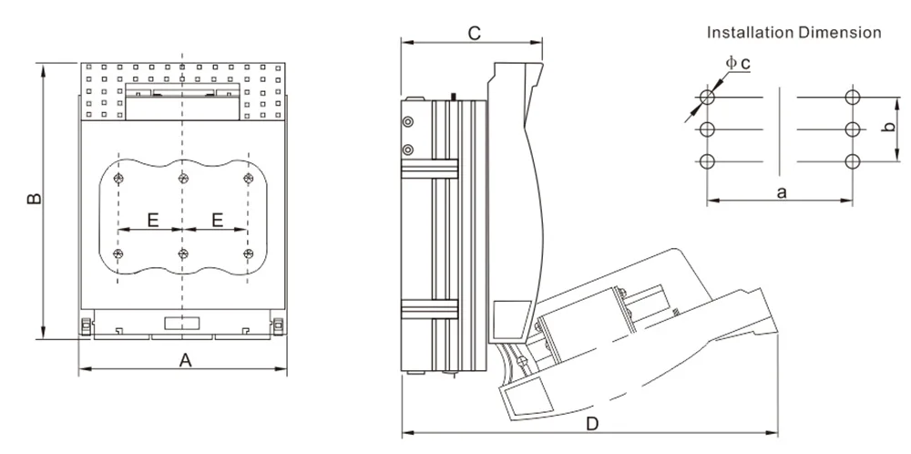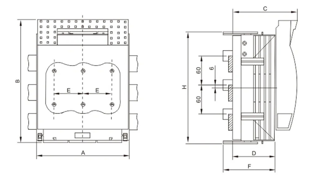 Outline and Installation Dimensions of HR17B-160~630A Hanging type